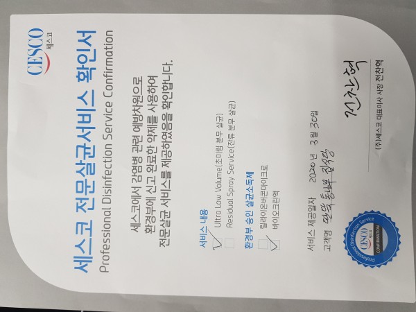 | 글 제 목 | 코로나 예방살균(세스코)실시 |