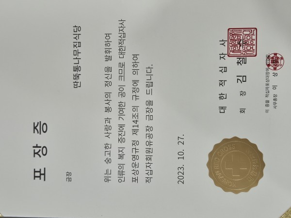 작성일:24-12-31 21:19 조회:1,254회 댓글:0건 글 제 목 대한적십사자 포장증 작 성 자 딴뚝통나무집 관련링크 이전글 다음글 목록 본문 감사합니다. 댓글목록 등록된 댓글이 없습니다. 이전글 다음글 목록